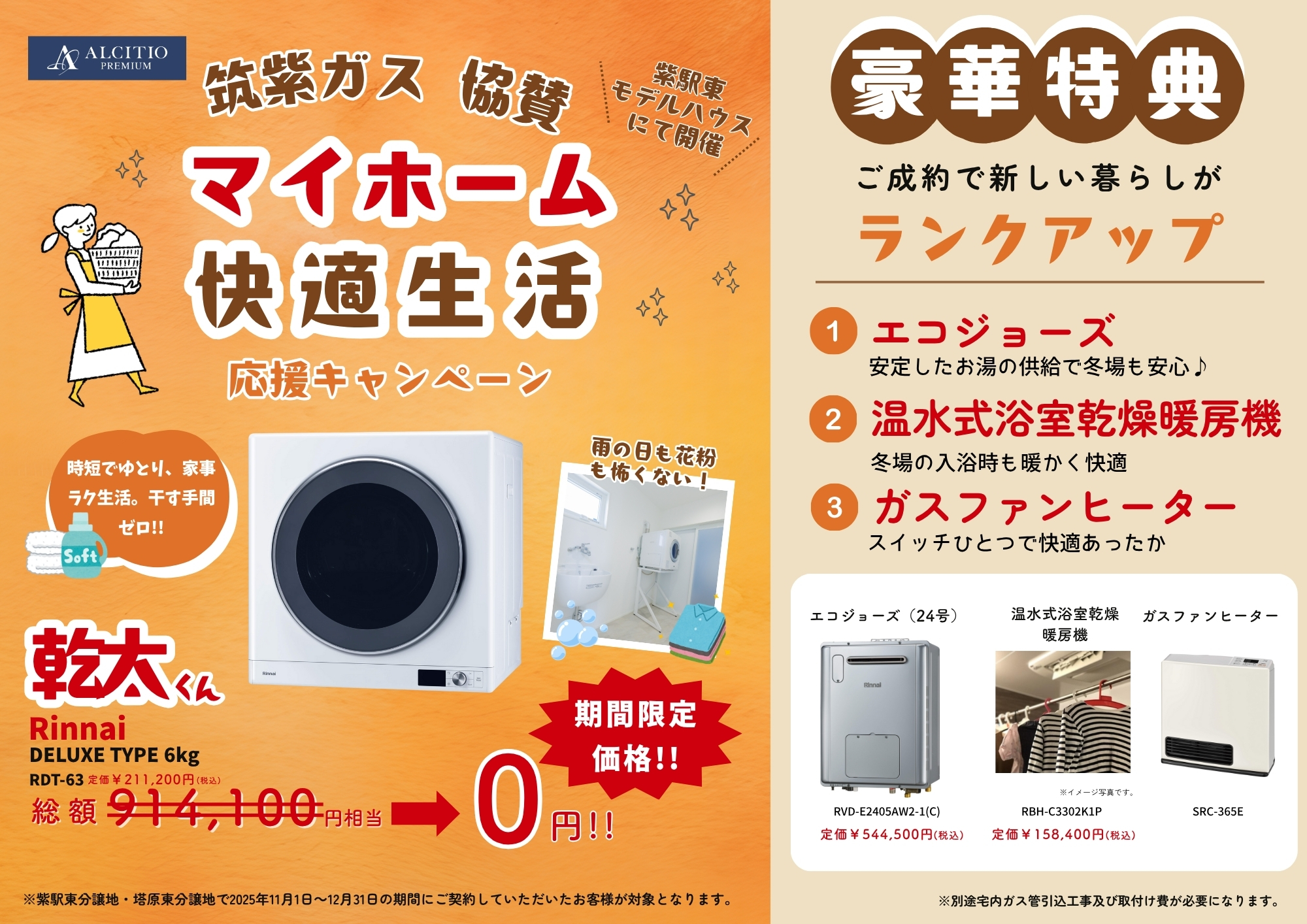 アルシティオプレミアムでは、筑紫ガス協賛「マイホーム快適生活 応援キャンペーン」を開催中です!