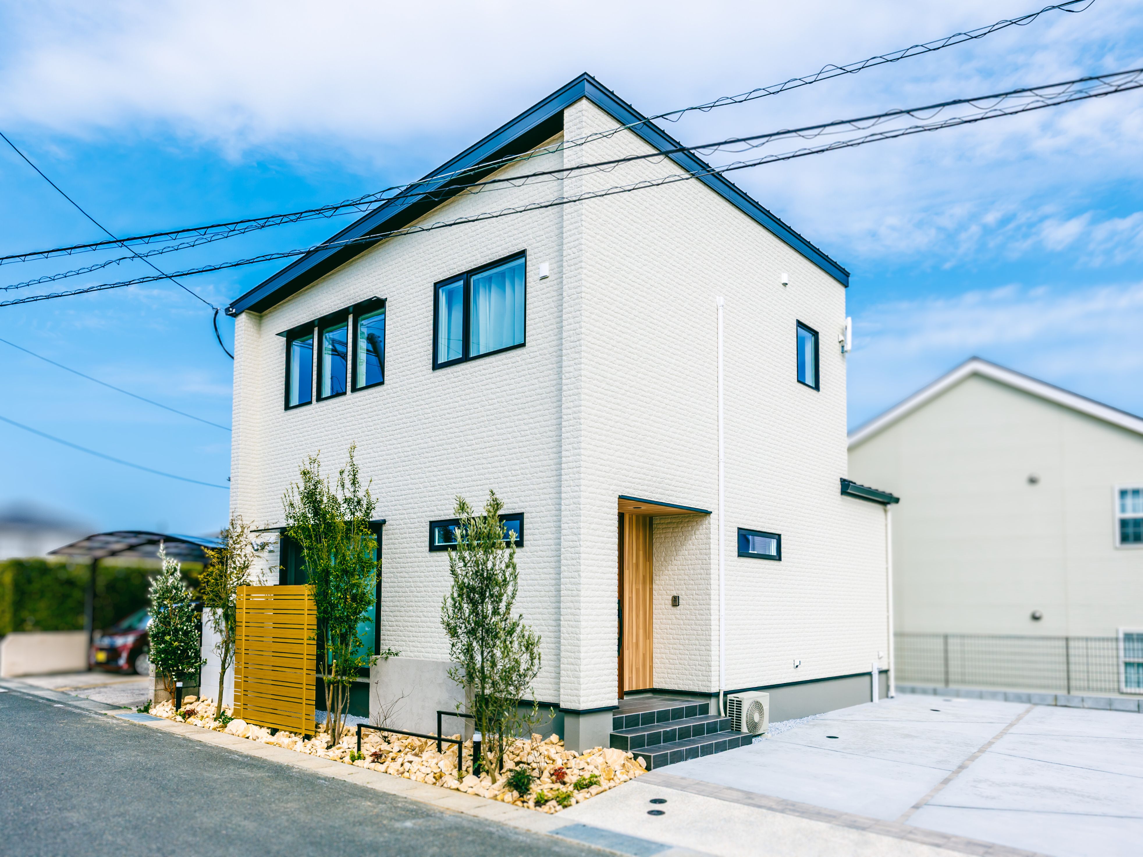 白い外観に、ご家族の手で仕上げた塗装がぬくもりを添える。想いを込めた“暮らしを育てるお家”