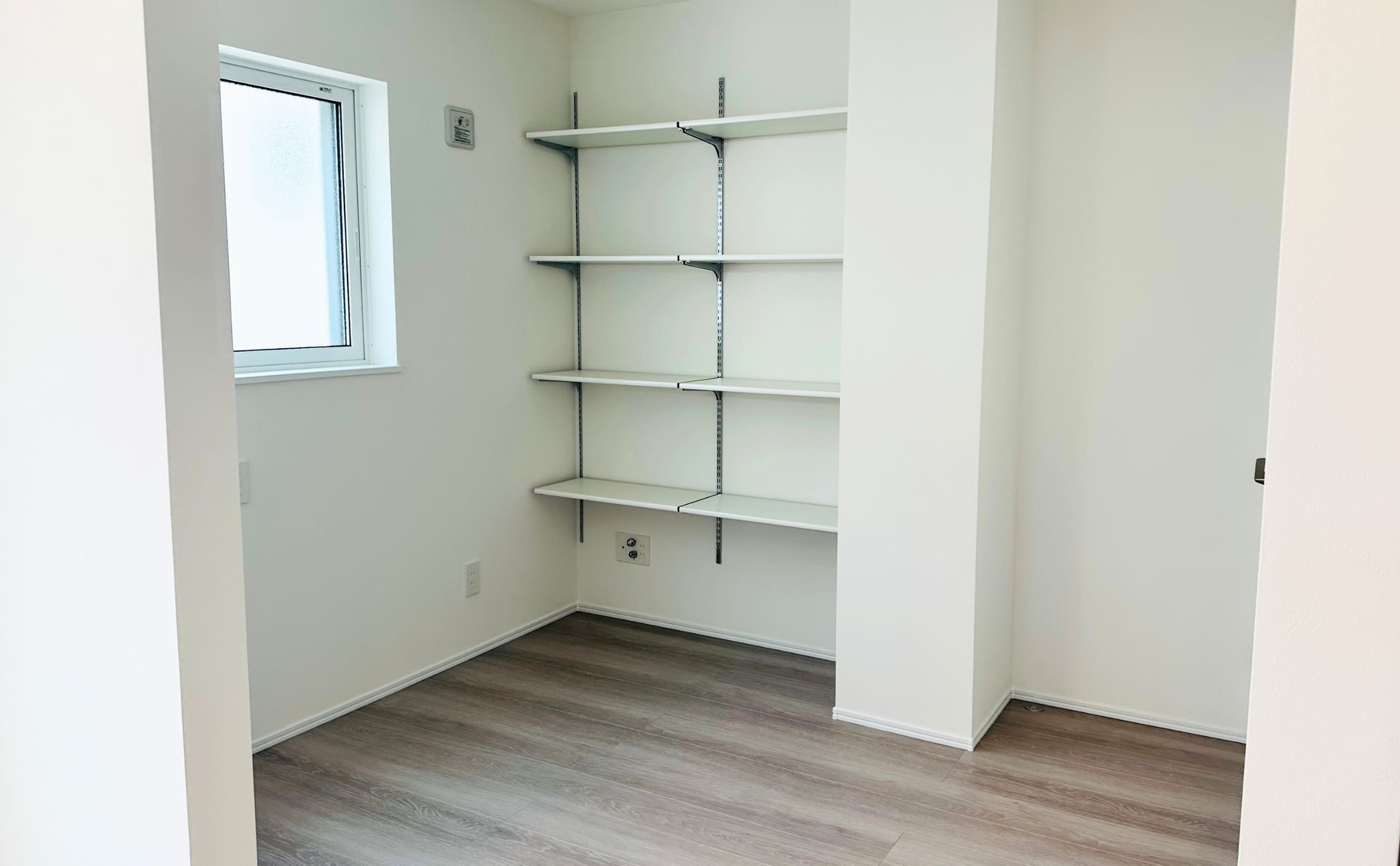 リビングに隣接する約3.8帖の書斎スペースは、仕事や読書、趣味など多彩に使えるプライベート空間。家族の気配を感じながらも集中できる設計で、暮らしの快適さを高めています。