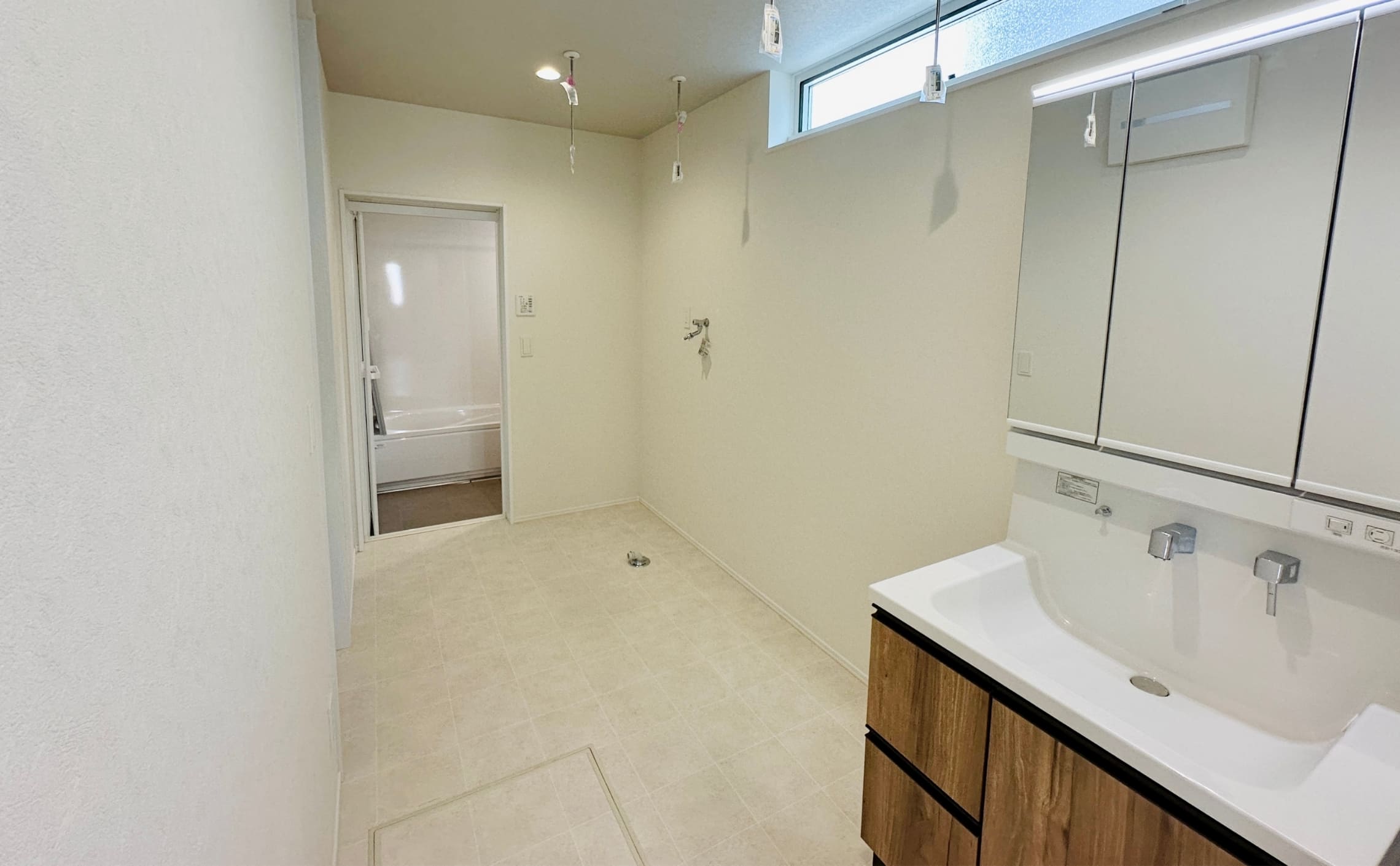 キッチンと横並びに配置した約4.1帖のランドリースペースは、家事動線がスムーズで使い勝手抜群。屋内物干しも可能なので、雨の日でも安心して洗濯ができます。