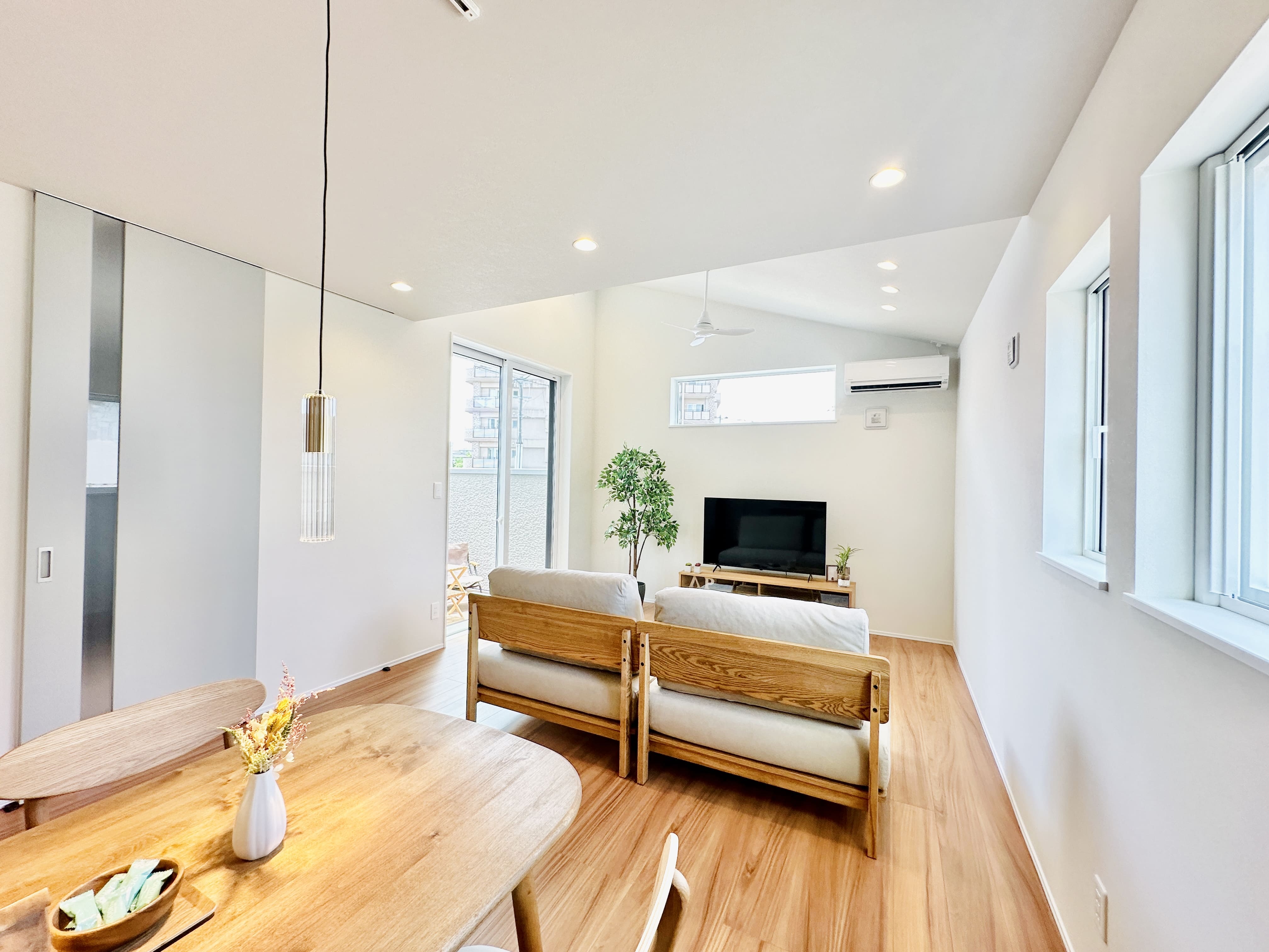 南に面した窓から中庭の光をたっぷりと取り込み、リビングは一日中明るい空間に。くつろぎの時間をより豊かにしてくれます。