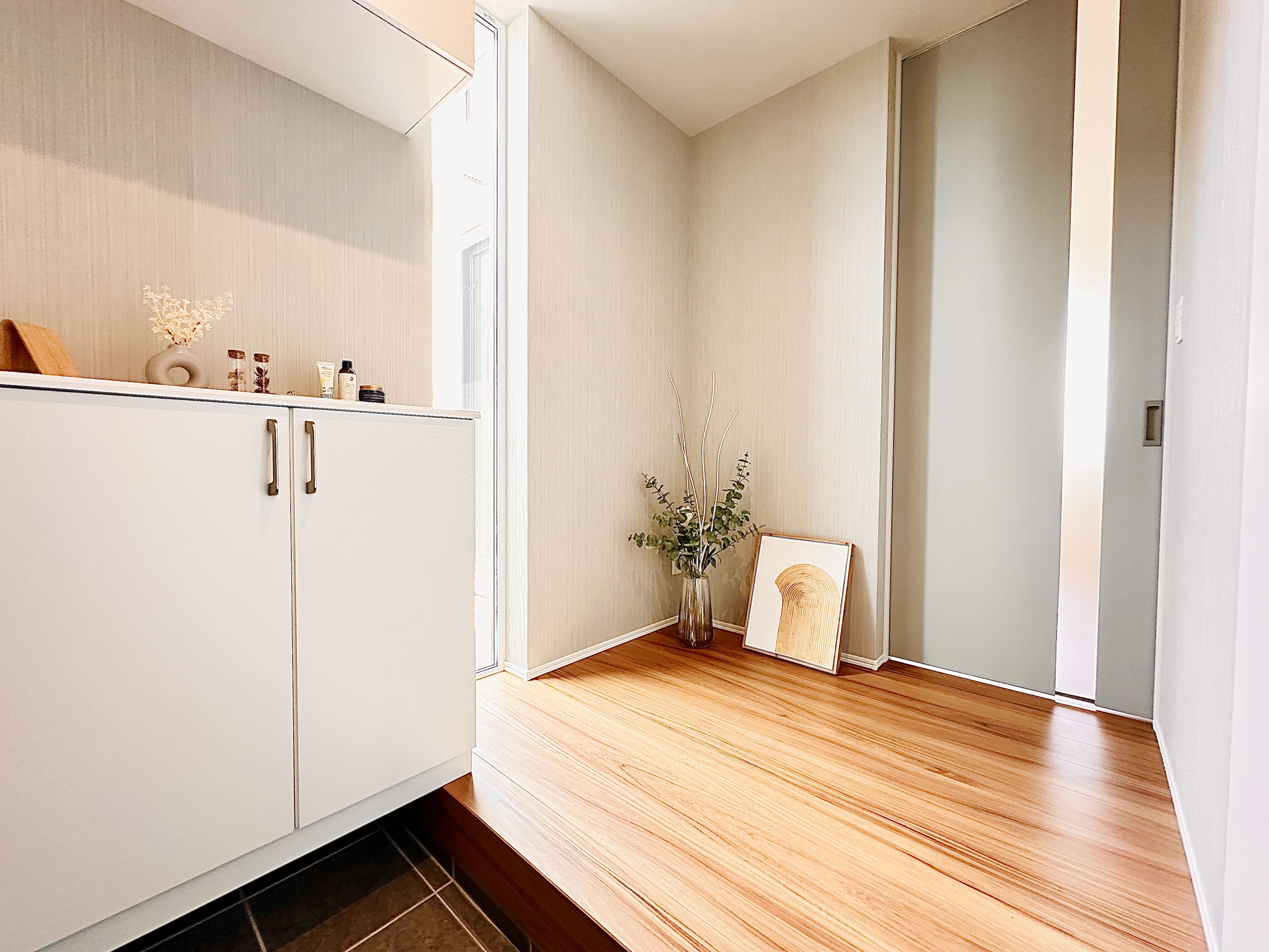 やわらかな光が入り、空間全体が明るく感じられる玄関ホール。 家に帰るたび、心地よさを実感できます。