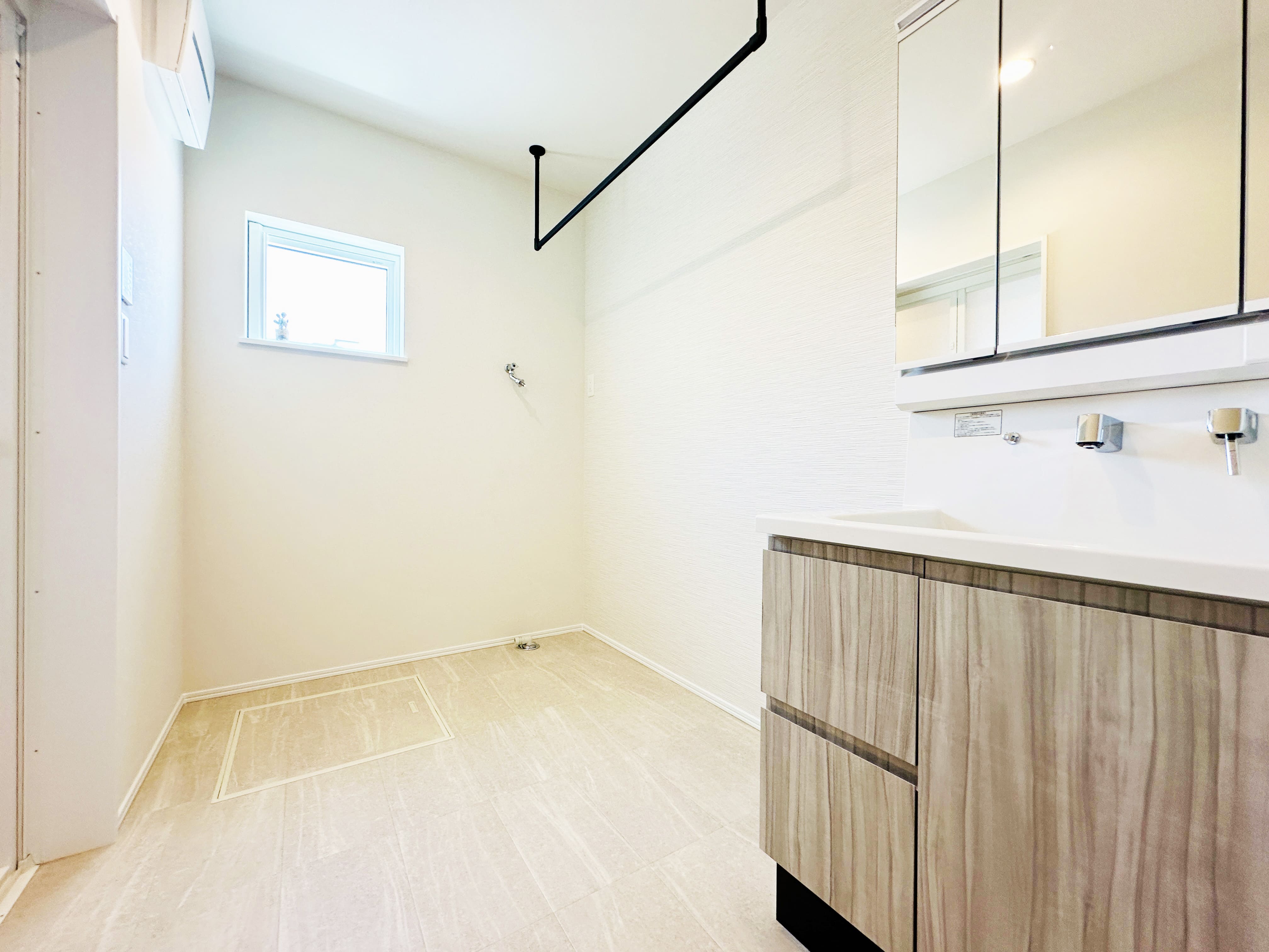 室内干しができるゆとりの広さを確保したランドリールーム。天気を気にせず干せるので共働き夫婦にも安心です。